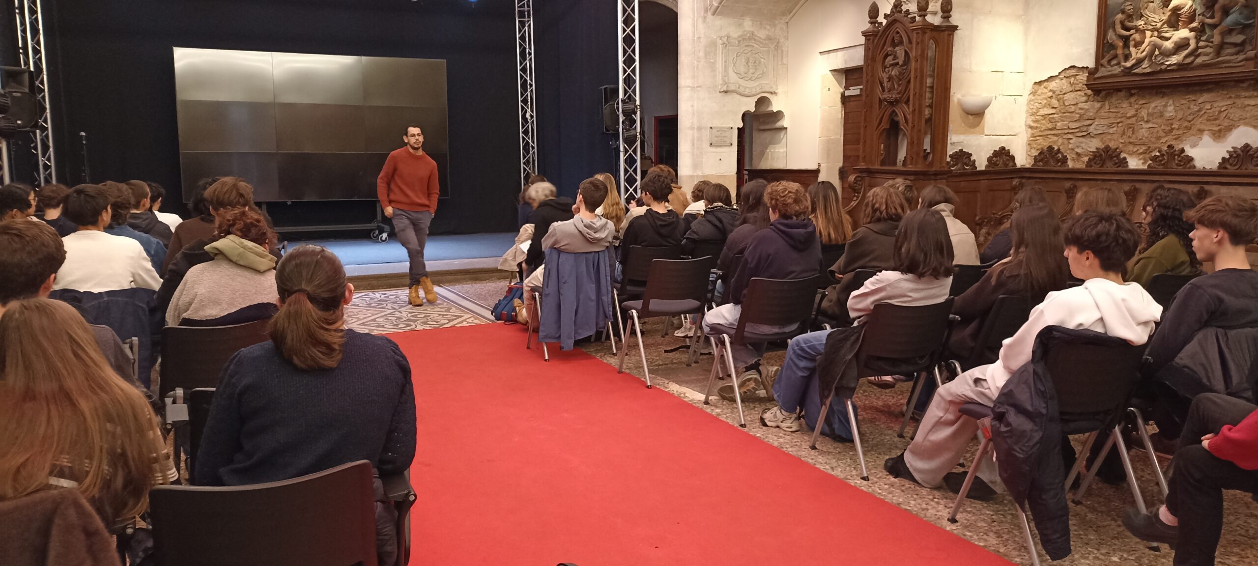 Le vendredi 21 novembre, les élèves de 1ere et Terminale des spécialités HLP et HGGSP ont eu l’occasion de rencontrer M. Youmni Kezzouf, Pendant toute une matinée, il a pu exposer son parcours et expliquer comment, de lycéen à Aubusson il a pu construire son parcours de journaliste jusqu’à intégrer l’équipe du bien connu journal en ligne Médiapart. La discussion a ensuite porté sur le métier de journaliste, et sur l’importance en démocratie d’une presse libre et authentiquement indépendante du pouvoir politique et économique.